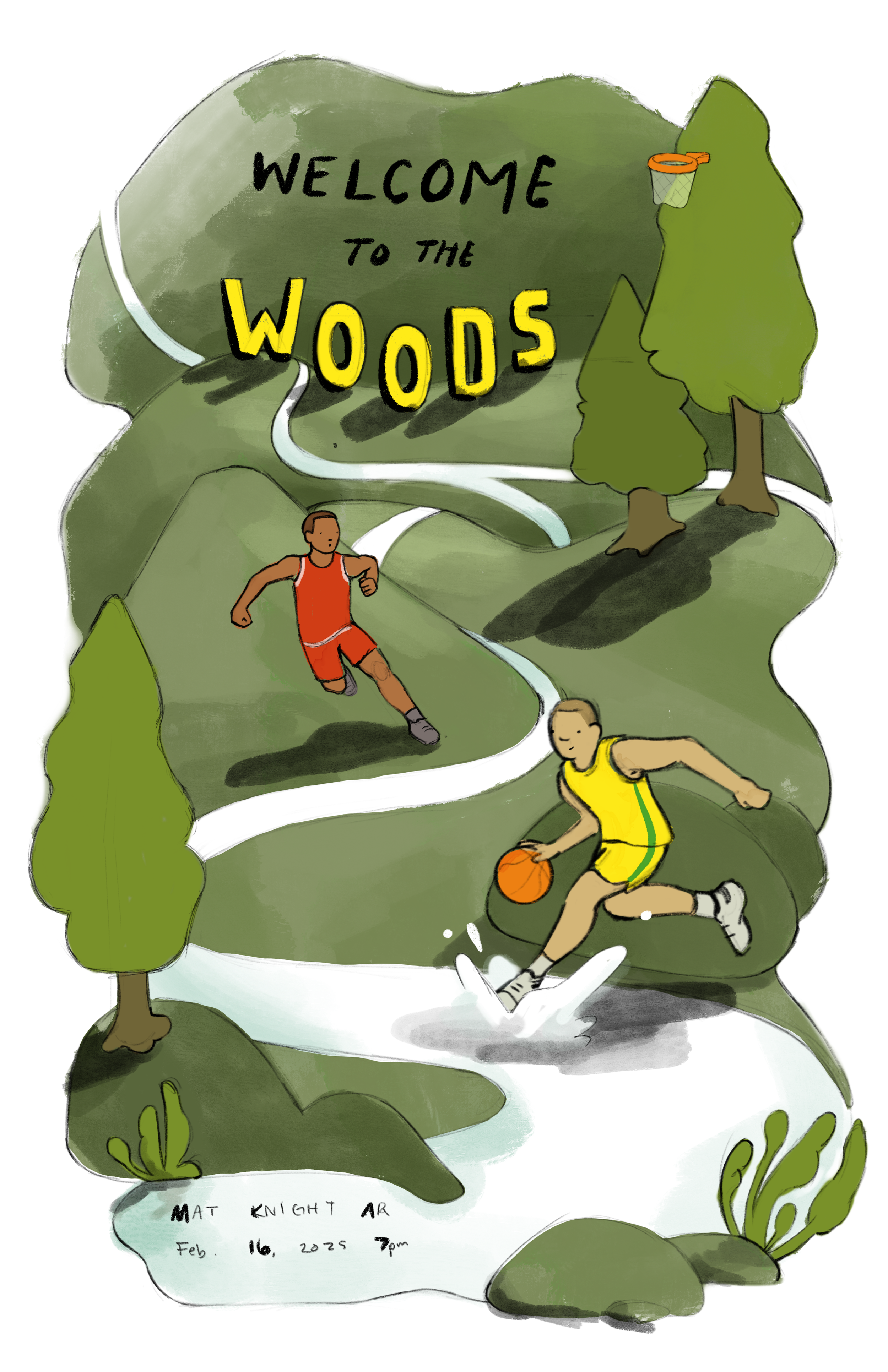 “Deep in the Woods” inspired by the UO Knight Arena flooring and Eugene natural environment.